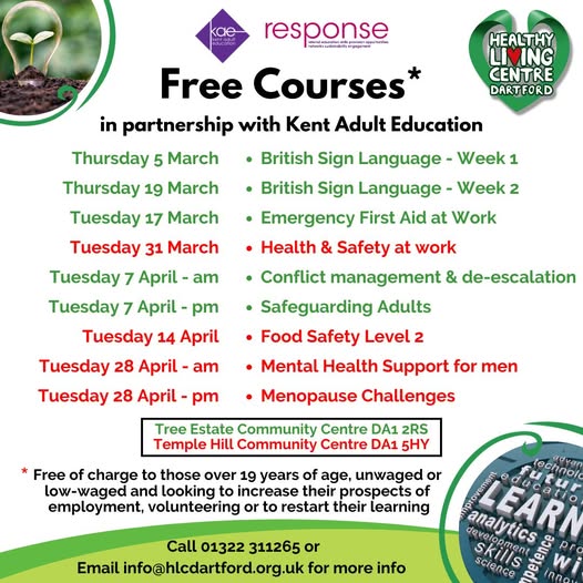 We are happy to be able, once again, to offer Response courses in partnership with Kent Adult Education