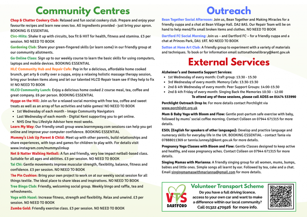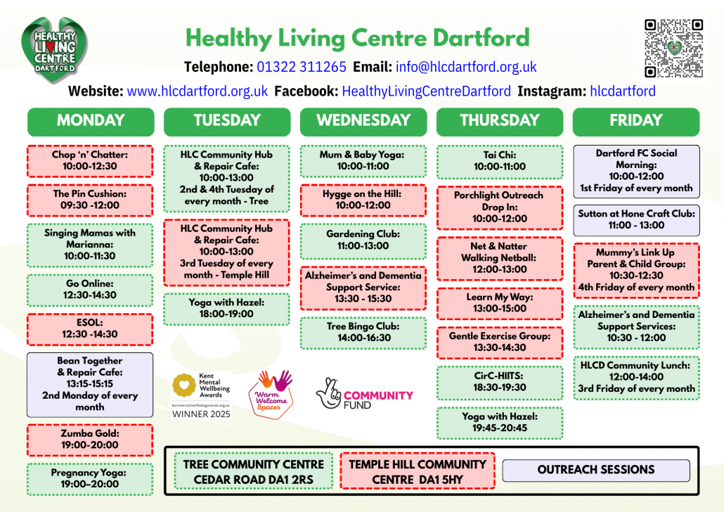 The Week at Healthy Living Dartford Email info@hlcdartford.org.uk to book Regular events at Healthy Living Centre Dartford For special events see News & Events page